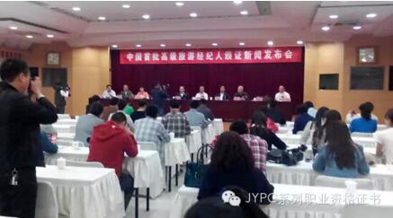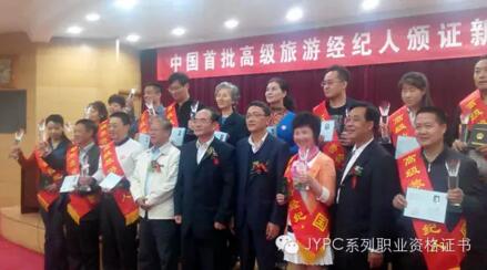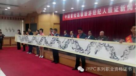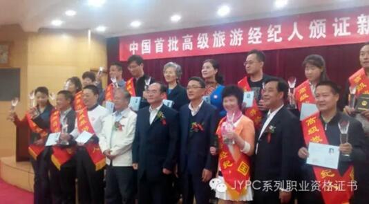 4月26日上午,中国首批高级旅游经纪人颁证仪式在山西太原举行,18位来自教育培训、旅游业、书画界等不同行业的人员获得职业技能考试认证中心(JYPC)颁发的中国首批高级旅游经纪人职业技能鉴定证书。原山西省政协副主席边鸣涛、原太原市市委宣传部部长黄征、JYPC考试认证中心主任王庆运等为获证者颁发证书、奖杯。